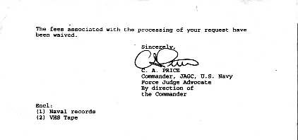 Dated May 20, 1997, this letter was a response from the U.S. Navy to a freedom of information act request by David Hendrix of the Press Enterprise Newspaper of Riverside, CA.
