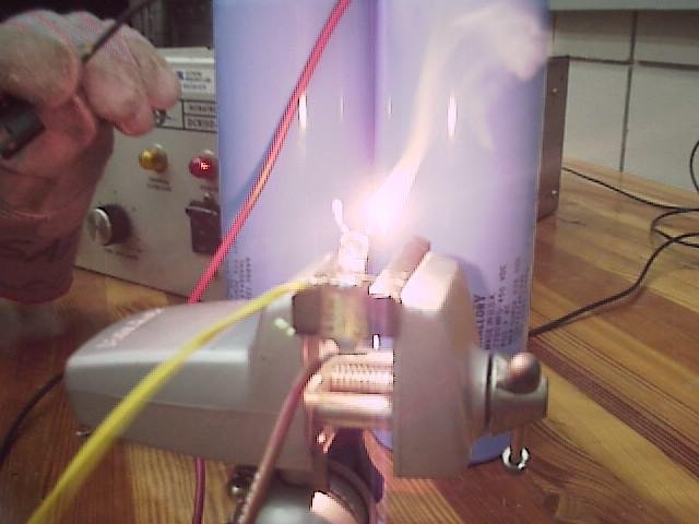 The following images were taken in rapid succession, as the capacitors discharged across the filament.