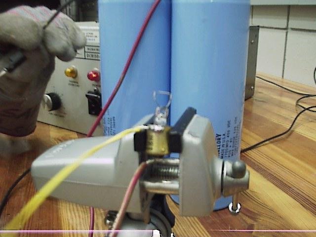 The following images were taken in rapid succession, as the capacitors discharged across the filament.